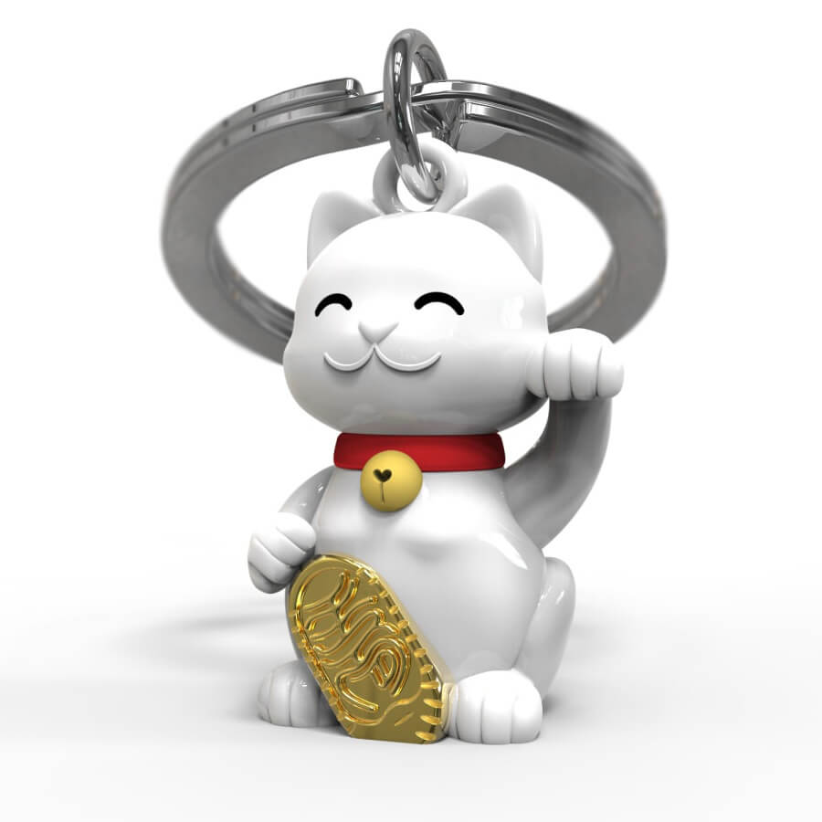 El llavero de Metalmorphose, "Lucky Cat," es un pequeño y detallado amuleto de la suerte que representa a un maneki-neko, o gato de la suerte japonés.